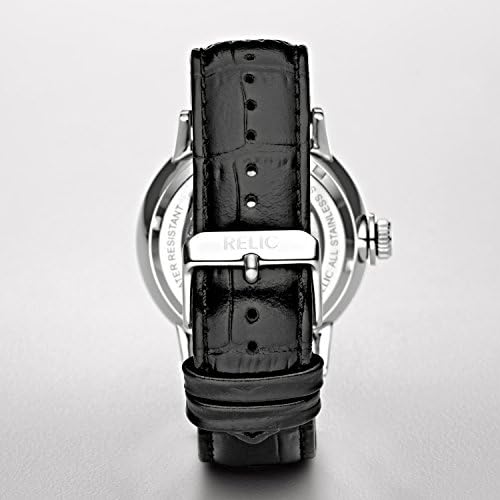 Relic by Fossil Men's Damon Silver Stainless Steel and Black Leather Band Automatic Watch (Model: ZR77224)