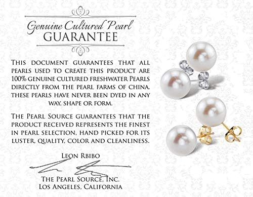 THE PEARL SOURCE 14K Gold 7-8mm AAAA Quality Round Freshwater Cultured Pearl Stud Earrings for Women