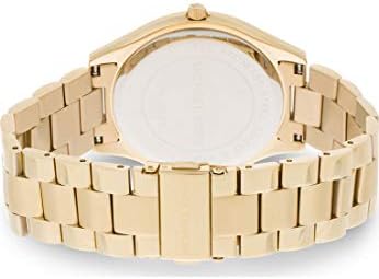 This Michael Kors Slim Runway watch features a gold-tone stainless steel case and bracelet. A champagne sunray dial completes the look. Case & Dial: Round 42mm stainless steel case with a gold dial; mineral crystal face resists scratches Watch Band: Gold-tone stainless steel bracelet band; 20mm band width; links can be removed for a customized fit Movement: Quartz movement with three-hand analog display; imported Water Resistant: Up to 50m (165ft): Wearable while swimming in shallow water; 5 ATM #13,778 in Clothing, Shoes & Jewelry ( ) #27 in