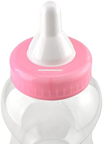 This cartoon sized baby bottle is meant for decorating! decorate this baby bottle with our ribbons, gemstones, jelly-balls, figurines, baby shower trinkets, etc. to use as a table centerpiece or give away to guests Dimensions: 15H x 5.5W x 5.5L Color: Light Pink