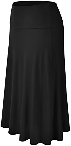 EIMIN Women's Solid Flared Lightweight Elastic Waist Classic Midi Skirt (S-3XL)