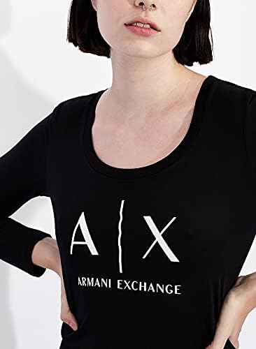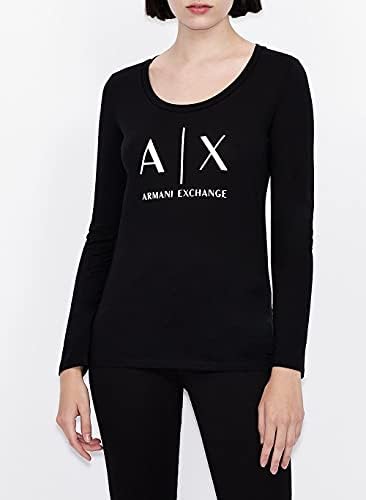 A|X ARMANI EXCHANGE womens Basic Scoop Neck Long Sleeved Tee With Logo on Chest T Shirt, Black, Large US