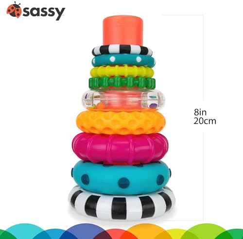 Sassy Stacks of Circles Stacking Ring STEM Learning Toy, Age 6+ Months, Multi, 9 Piece Set