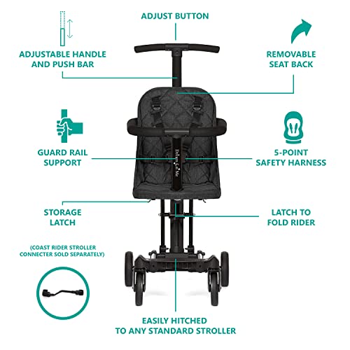 Polyester Imported EXPERIENCE THE WORLD: The Parent-approved Coast Rider Stroller effortlessly converts from Stroller to Scooter and Rider, offering your child a 275-degree viewing . Meeting all Disney and theme park size specs with plush seating, make this award-winner a part of all family outings. BYE-BYE BULK: Super lightweight at just 13.5 Lbs, its aluminium frame and soft-ride wheels makes manoeuvrability a breeze. Combined with the easy one-hand fold feature that allows it to fold inward like a book in an instant, it’s a parent-loved choice. PARENT-CONCIOUS: The innovation-driven Coast Rider Stroller comes with adjustable handles and push bars, and water-proof fabric. It can also be combined with the Coast Rider Stroller Canopy and Connector (both sold separately) for on-the-go fun time. Available in 5 finishes. THE SAFEST CHOICE: This stroller comes a 5-point safety harness, and meets/exceeds all CPSC and ASTM standards. Winner of the 2020 JPMA Innovation Awards, 2020 National Parenting Product Awards and 2020 Baby Maternity Magazine Product of the Year Award. WARNINGS: Weight limit: 45 Lbs. Dimensions: 28 L x 14 W x 37.5 H. Additional weight on handles could tip the stroller or the child can get entangled by a strap causing suffocation or injury. Please follow all safety protocols.