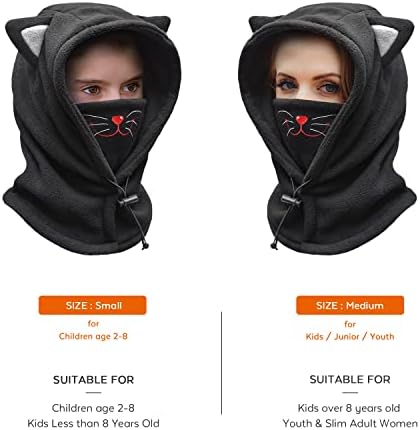 Fleece Ski Mask for Winter, Face Cover with Ear Loop M Size / for Kids/Teens Age 2 - 12 years old L Size / for Youth and Adult Windproof and Multi function in Outdoor activities Keep Warm, perfect winter gear/snow gear in the cold weather