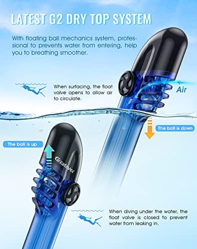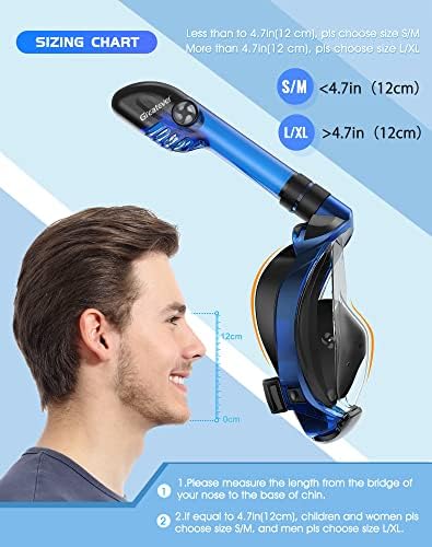 [PANORAMIC VIEW AND SUPPORT CAMERA MOUNT]Our snorkel mask adopts transparent flat lens made by high definition premium PU resin, preventing from distortion the view and eliminating the dizziness underwater. With the removable motion camera mount allows you to clearly discover the underwater world. [G2 DRY TOP SYSTEM] G2 snorkel mask is designed by a famous designer. We adheres to folding design, as well as the addition of a two-channel exhaust valve,and to expanded the diameter of the top snorkel to 1.26 inches. [BREATHING FREELY AND MAXIMUM AIR INTAKE] After two years of repeated exploration and improvement, our G2 full face snorkel mask has the outstanding performance in breathing and air intake. When you use our snorkel mask for surface snorkeling, you will feel comfortable and smooth breathing. [PROFESSIONAL ANTI-FOG&ANTI-LEAK]The full face snorkel mask is made of high-quality silicone, the entire snorkel mask is fully wrapped to achieve a leak-proof effect, and the silicone layer inside the mask directly isolates the air from the nose and mouth, and the heat air is not easy to condense on the mirror surface. [AFTER SALES SERVICE] As long as you are our customers,since the day you buy G2 snorkel mask. We will provide 24-hour uninterrupted service. We sincerelly believe we will bring the customers the most satisfied buying experience.