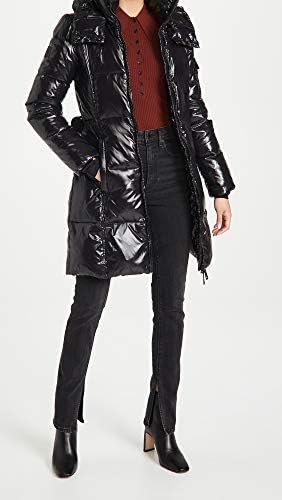 Fabric: Mid-weight, non-stretch quilted weave Fill: 80% goose down/20% feathers Coated finish, High neckline with zip-off drawstring hood, Long sleeves with knit thumbhole cuffs Two-way zip closure, Elastic belt at waist with logo buckle Zip front pockets, Zip and flap pocket at shoulder