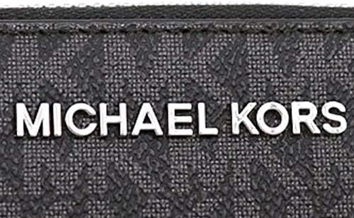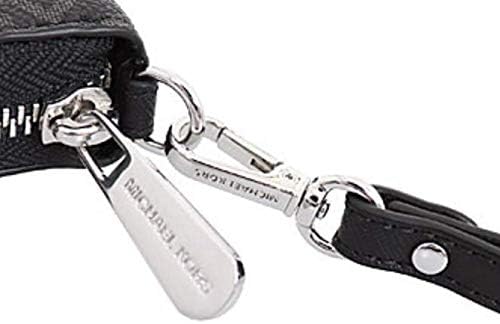 Michael Kors Jet Set Travel Continental Zip Around Leather Wallet Wristlet (Black PVC/Silver Hardware)