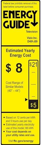 1080p High-Definition - Watch TV in crisp, clear 1080p Full HD resolution and experience a brilliant picture with the VIZIO D-Series..Voltage : 120V.Viewable Area : 39.5''. Standby Power : <0.5W Full Array LED Backlight - Evenly distributed LEDs across the screen’s backlight deliver superior light uniformity and picture performance. IQ Picture Processor - Delivers superior picture processing, faster navigation, and quicker load times to get to your favorite content faster. V-Gaming Engine Automatically optimizes picture mode for gaming and makes next-gen console gameplay more responsive with Auto Game Mode, Variable Refresh Rate with AMD Freesync, D-Series lowest input lag, and newly added gaming menu. SmartCast - With intuitive navigation, enjoy instant access to the best selection of apps from top-tier streaming services like Netflix, Disney+, YouTube, HBO Max and many more right out of the box.