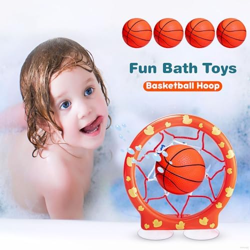 MARPPY Bath Toys, Bathtub Basketball Hoop for Toddlers Kids, Boys and Girls with 4 Soft Balls, Mold Free & Strong Suction Cup, Bathtub Shooting Game & Fun Toddlers Bath Toys for Boys or Girls