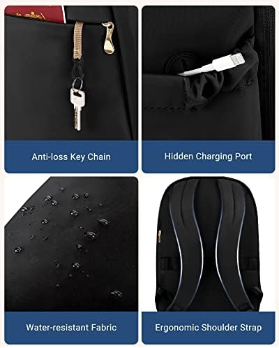 LIGHT FLIGHT Travel Backpack for Women, 15.6 Inch Anti Theft Laptop Backpack with USB Charging Hole, Water Resistant College Bookbag, Large Capacity Black Computer Backpacks for Work, Black