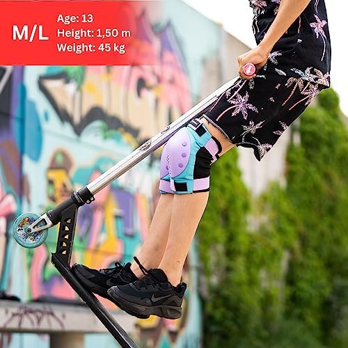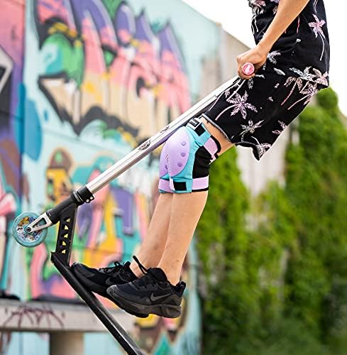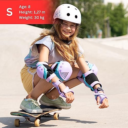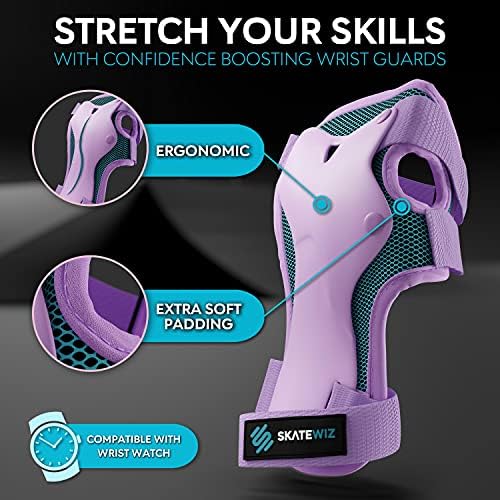 SKATEWIZ Skateboard Pads Protective Gear Set for Kids - Smash - Roller Skate Pads [6pc] - Elbow Pads Roller Derby and Knee Pads Kids Skating with Wrist Guards for Kids and Adults