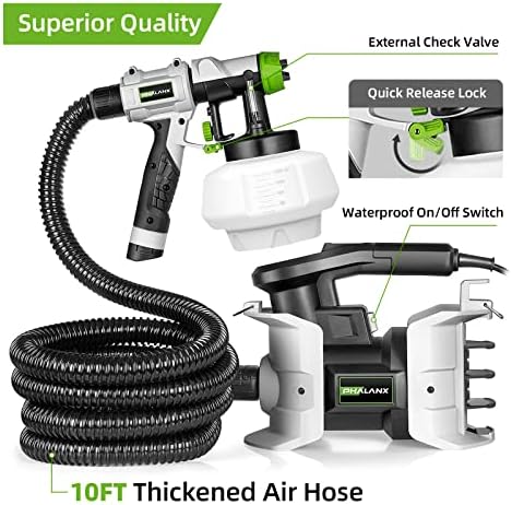PHALANX 700W Electric Paint Sprayer with 10FT Air Hose, 1200ML, 4 Nozzles, 3 Patterns, Paint Sprayer for House Painting Home Interior & Exterior Walls, Ceiling, Fence, Cabinet