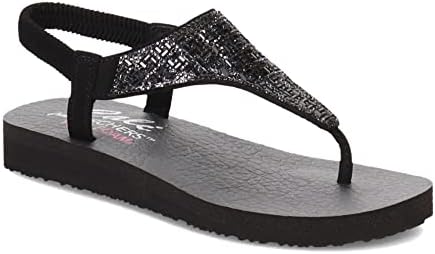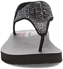Rhinestone embellished synthetic upper with stretchable sling-back strap Lightweight midsole Yoga Foam cushioned comfort footbed Flexible traction outsole casual thong sandal rhinestone embellished slingback ankle strap