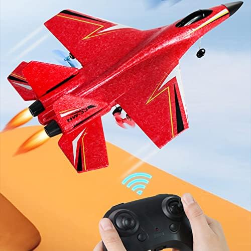Su-27 RC Airplane,2.4GHz 2 Channel Remote Control Plane with Gyro Night Lights and Batteries, Easy to Fly for Adults, Beginners Kids, Red