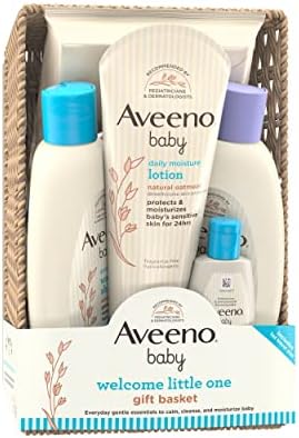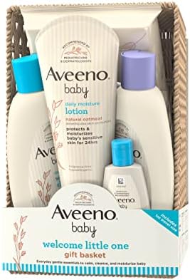 Aveeno Baby Welcome Little One Gift Basket, Baby Skincare Set with Baby Body Wash & Shampoo, Calming Bath Wash, All Over Baby Wipes, & Daily Moisturizing Lotion, 5 Items