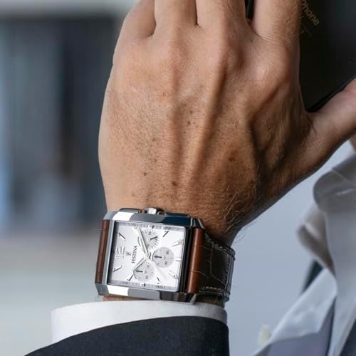 Men's watch made of stainless steel and leather from Festina in silver-brown The watch has a silver stainless steel case with a diameter of 38 mm Silver dial, luminous hands, date, mineral glass, pin buckle, Festina logo The watch has a water resistance of 5 bar (suitable for everyday use such as B. bathing, showering or washing hands) The watch is equipped with a quartz movement #1,010,820 in Clothing, Shoes & Jewelry ( ) #5,943 in