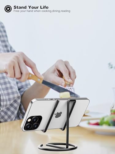 Wide Compatibility: This cell phone stand is compatible with all 4-6.5 inches smartphones in phone cases, like iPhone 14, 14 Pro,iPhone 13 Mini, iPhone 13, iPhone 13 Pro,12, 11 Pro XS XR. Unique Design: This phone stand for desk has excellent stability and play a good role in your office, kitchen, nightstand, dining table. No bent & tangling & tip over worries when using while charging. Sturdy & High Appearance: The cell phone holder is made of premium metal,it stays firmly in place,hold your phone steadily,no worry any wobble at all. Ergonomic Viewing Angle: The phone stand holder is in accordance with ergonomic design. Providing you comfortable viewing angle which helps to fix your posture and reduce neck & back strain. Service Satisfaction: If you are not satisfied with our Cell Phone Stand Holder, please feel free to contact us, we will reply within 24 hours and provide you with a satisfactory solution.
