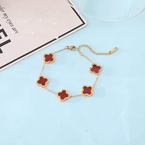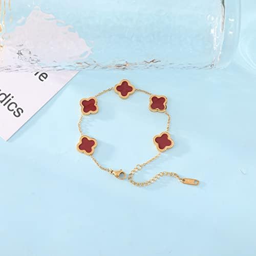 ♣.《Idea》: Legend four-leaf clover symbolizes luck, one hundred thousand beads of clover can only find a four-leaf clover, four leaves respectively represent true love, health, reputation, wealth! ♣.《Product size》: The Clover Bracelet is 6.41 "+1.77" extension chain, adjustable extension chain design meets most wrist requirements. ♣.《Product Material》: High-quality stainless steel,anti-allergy,does not fade,Make your experience feel perfect. ♣.《Suitable for the crowd》: Nothing makes a woman happier than jewelry! Give the gift of jewelry with these stunning gold clover Bracelets for yourself or for your mother, daughter, girlfriend, wife, or friend. They are the perfect choice for birthdays, Valentine's Day, Mother's Day, or any other special occasion ♣.《After-sales service》: If there is problem with the products, you can contact us through your Amazon order interface. The after-sales team is always ready to solve the problem for you until you satisfaction.