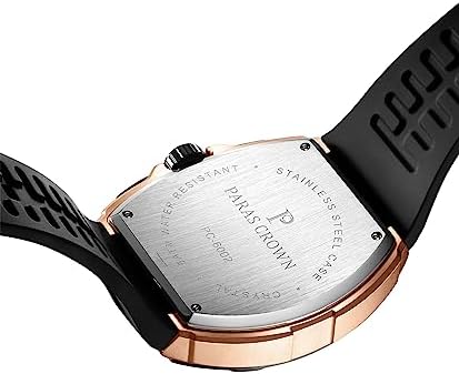 ⌚【FASHION AND ClASSIC】PARAS CROWN men's watches are meticulously crafted in a vintage style, featuring a Tonneau case that seamlessly blends oriental aesthetics.They incorporate a clever combination of colors, materials, and manufacturing techniques to create a fashionable and classic look. ?【304 STAINLESS STEEL CASE】PARAS CROWN men's wristwatches have a masculine look with a large stainless steel case measuring 49x45mm (1.93x1.77 inches). The stainless steel case not only provides exceptional durability and corrosion resistance but also extends its longevity. ?【BEST GIFTS &24-MONTH ASSURANCE】Every watch comes with a beautiful box, perfect for Thanksgiving Day,Christmas,New Year,Birthday,Wedding,Graduation,Valentine's Day,an ideal gift for father, husband, boyfriend, or brother. ?【Miyota JS25 MOVEMENT 】PARAS CROWN men's luxury watch features the Miyota JS25 Japanese quartz movement, which is renowned for its precision and reliability. Whether you're dressing up for a formal event or going for a casual look, this watch will complement your style perfectly. ?【5ATM WATERPROOF】After undergoing strict testing, the watch has been rated as waterproof up to 50 meters, which effectively protects the watch from splashes, rain, hand washing, sweat, cold water, and daily wear. #205,616 in Clothing, Shoes & Jewelry ( ) #850 in
