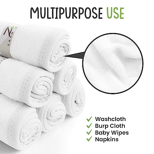 Set of 6 Baby Washcloths – Viscose Made from Bamboo – Super Soft and Highly Absorbent Face Towel – 10 x 10 Inch – Reusable Double Layered Wipes for Newborns, Infants and Toddlers – White