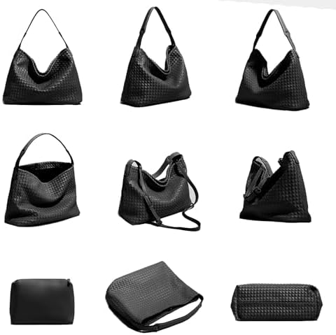 【Vegan Leather Tote ! Stand The Test of Time】Our woven bag is made of high quality vegan leather instead of animal skin, No animals are harmed and it is good for the environment. simple weave elements can better reflect the advanced design style. Delicate woven detailing runs throughout the frame. it's light and practical. It is suitable for daily carry and can carry the items you need for travel. You will get 1 x handbag and 1 x clutch in your order. 【Shoulder bag dimension】Handbag size: 13.77" L x 5.51" W x 11.81" H, Handle drop: 10.23" . Clutch size: 9.44" L x 4.33" W x 7.87" H.Simple and spacious utilitarian design with a adjustable strap,removable and punching adjustment . The tote handbag can be loaded into mobile phones, earphones, power banks, cosmetics, masks, keys, folding umbrellas, water bottles and other daily carrying items. The clutch bag can hold personal items such as coins, cash, etc.to meet your different needs. 【Best of The Best Design】It can be used as a shoulder bag, handbag and crossbody bag, with a comfortable and soft handle, and its armhole is big enough to match your shoulders. Elegant and unique hand-woven texture, it is simple, stylish and effortlessly matches everything in your wardrobe. It represents the easy, laid-back, free and slow-paced life, and it is a symbol of our pursuit of a better life. 【Multiple Occasions】You can take it to work, dining at restaurants, watching movies, traveling, shopping, going on vacation, dating, beach and more.It is a good choice for everyday use. If you want to go on vacation, beach or travel then this women's shoulder handbags will be the ultimate choice for you. 【Great Gift Option】 This tote bag with metal lock catch is perfect gift for girlfriends, wife, mothers, sisters,daughter or yourself etc. Due to the influence of shooting lighting and ambient light, there is a little color difference between the picture and the eye. After adjustment, the picture is very close to the original color of the hobo bag. #114,598 in Clothing, Shoes & Jewelry ( ) #191 in