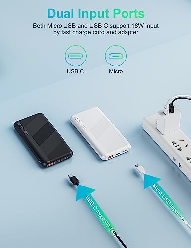 Portable Charger Small and Slim: Compact 10000mAh power bank, weight only 210g and 16mm thickness, grip on hand or put into your bag easily, this portable charger is excellent for international travelling or outdoor activities, take on plane or train. Note: Charge for Phone 15 series need specified cord. Battery Pack with High Speed: The charging bank has USB-C 20W bidirectional fast charging, charge your iPhone 12 Pro from 0% to 100% within 45 minutes. the USB-A provide 22.5W power delivery for iPhone, Samsung, LG, Sony, Motorola, Nokia cell phone and more. Charge with Confidence: Portable battery charger adapt the premium lithium polymer battery cell, ABS plastic shell, built-in intelligent current IC, multi protect system keep your phone running smoothly, this battery bank can charge your iPhone 8 3.5 times, Samsung S21 2 times. Dual Inputs: You can recharge this external battery through the Micro USB or USB-C, can fully refill the battery by the 10W Micro cord in 5 hours, just need 3.5 hours by the above 20W USB C charge cord, always have a full energy external charger, not lack of electricity during working or vacation. What You Get: 2x 10000mAh phone power bank, 2x Type-C charge cord, 1x user manual. We provide 7 day 24 hours promptly customer support, your satisfaction is our desirable goal. hope our portable charger power bank can bring you an joyful experience, have a nice day!