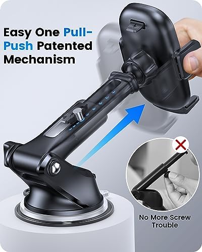 Anti-UV Film Only for Windshield Install: We developed the unique windshield Anti-UV film, with this film's help. This suction cup phone mount will never melt & fall off and keep your window clean away from ugly marks in the summer heat. Patented Tap-button & Single Gear Release: Tap not press that means you get a quick interaction & quick release. Anti-leaning Silicone Pads: With these textured silicone pads, the side grips work better to catch your phones. Dash Pad Mounting Disk Only for Dashboard Install: Has a diameter of around 2.76 inches, applicable to most car dashboards on the market. No tools are required for dash installation. Easy One Pull-Push Patented Mechanism: Say goodbye to screw adjustment hassle, with the OQTIQ telescopic arm, which can be extended from 4.2 to 5.8 inches in seconds while pull and push adjustment. It’s very convenient to adjust the distance between you and the holder, always within reach.