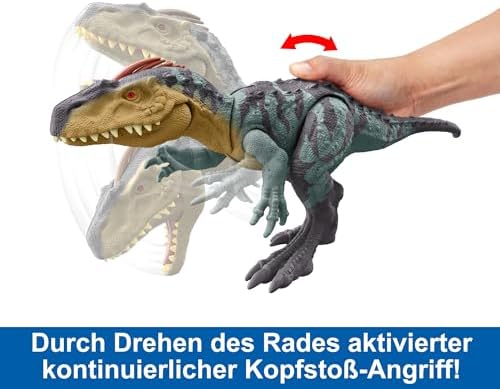 Mattel Jurassic World Gigantic Trackers Neovenator Dinosaur Action Figure, Large Species Toy, Attack Chomp, Evolving Head Crest, Digital Play