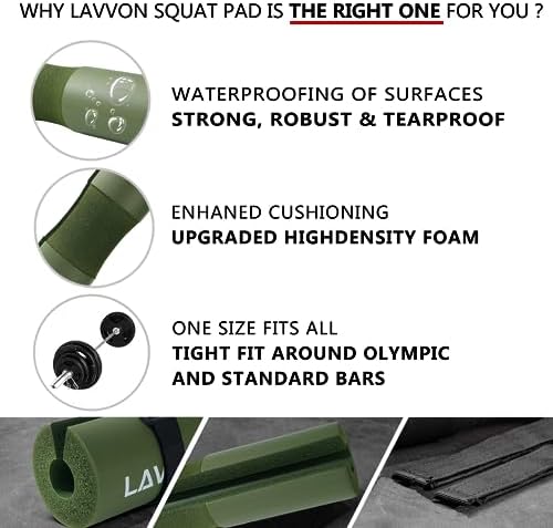 ELEVATE YOUR WORKOUT: Ready to take your weightlifting and strength training to the next level? Look no further than LAVVON’s hip thrust pad set! Made to meet the highest standards of quality. ULTIMATE COMFORT: The squat bar pad for Olympic bars is made from soft, thick and protective high-density foam which increases durability and allows you to train in a much easier and comfortable way. VERSATILE ANKLE STRAPS: We use a sweat resistant, breathable neoprene ankle cuff, Thicker 8mm padding can effectively provide cushioning,, calves. Tone, trim, and tighten your leg and glute muscles for a better butt, Thighs that are beach ready. STRENGTHEN GRIPS: Constructed with reinforced double cross stitching, the lifting straps boast of ultra durability. The wrist straps for weightlifting can go around the bar 3 times for optimal wrist support and drastically improved grip strength. PORTABLE: Barbell Neck Cushion Pad Set includes one Lightweight High Density Foam Neck Pad, Comfort Ankle and Deadlift Weighting Strap, Portable storage bag designed to bag take it easily to the gym or any other place and Two safety Velcro straps provides extensive protection, so it does not move around during exercises. WARRANTY: Making sure that you get a product of the highest quality is very important to us. Provides a full warranty for all of its products.