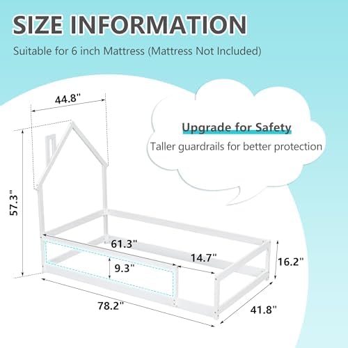 80% Pine Wood [House-Style Headboard]: The house-style headboard features the house-roof frame structure to make feel at home. This intelligent design adds to a jolly good idea of the imagination and exploring. [Bed Platform with Guardrails Design]: bed platform with full-length guardrails not only provides better fun and joy, but also reduce any concerns about the safety. The guardrails around the bed are designed to have an opening to made easy to get in and out of the bed platform. [Quality and Safety Guaranteed]: This twin size bed is crafted mainly from quality pine wood , providing lasting sturdiness and durability. The twin bed is constructed with firmly secured compartments, forging solid stability that ensures relaxing bedtime experience and soothing nights. [Stylistic Elements]: A twin size mattress (Not included) can be laid down within the bed frame to ensure the security and safety protection. The headboard combines the house-style structure with bed sleeping function. Moreover, there are a variety of classic colours that you can choose, from which you believe suits your bedroom the best. [Easy Assembly]: The twin bed is delivered in one individual package, along with an installation manual and full set of hardware necessary to guide you through the process of assembly, and each bed will be smoothly assembled while following the manual instruction step by step.