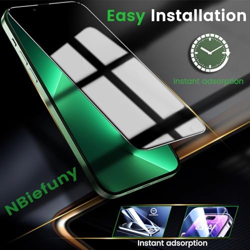 【Compatible with iPhone 13 Pro max】 include 3 Pack privacy screen protectors + 3 Pack Tempered Camera Lens protectors, only for iPhone 13 Pro Max, not for any other models, double protection screen scratches resistance, breakage, dust, oil, and fingerprints. 【Excellent Privacy Protection】 This iPhone 13 pro max screen protectors made of 9H military blast-resistant glass, realizes 28° super privacy function. It can effectively safeguard your privacy from people near you who may be peeking. Note: When using the privacy protector, the brightness of your phone screen will decrease, It is recommended to increase the brightness when using it. 【Sensitive Touch】 0.33 mm ultra-thin privacy screen maintaining, the same responsiveness and touch experience as a naked phone. It also ensure 99% retention of the original ultra HD picture quality. Screen protector is treated with a plasma oil repellent coating, effectively preventing fingerprints caused by sweat and oil stains. 【Night Shooting Function】 The camera lens protector adopts the new technology of "seamless" integration of augmented reality, with light transmittance and night shooting function, without the need to design the flash hole position, when the flash is turned on at night, the original quality of photos and videos can be restored. 【Premium After-Sales Service】NBiefuny Committed to providing a better shopping experience. If you accidentally order the wrong size, fail at installation, or encounter any other issues, feel free to let us know, we will provide you with satisfactory service within 24 hours. (FREE Replacement, no need to apply for a return, and no fees required.)