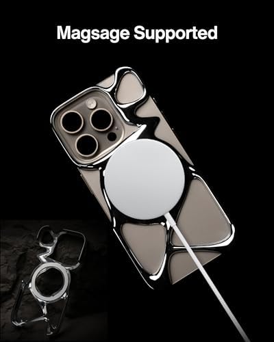 Organic hollow custom shape - The "frame" forms around your phone like the flow of liquid. The design of the AM Emptiness Phone Case will defintely catch your eye, but it does that without canibalizing on the beauty of your iPhone's colorscheme. Emptiness for better heat dissipation - The hollowed-out design of the AM Emptiness Phone Case not only looks cool, but also provides better heat dissipation than traditional phone cases. Emptiness with ample protection - Although the AM Emptiness Phone Case consists of large areas of emptiness, we made sure that the all-round design includes effective protection of your phone's frame and its four corners. Just to make sure it's protected when you drop it. Light Weight - the AM Emptiness Phone Case uses lightweight PC material and a hollowed-out design to reduce its weight to just 22 grams. Featherlight without compromising on the looks. Compatible for Magsafe - Magnets are built-in into the phone case, ensuring support for official and most third-pary MagSafe accessories. All this while keeping weight at a minimum. Form and function. The AM Emptiness Phone Case offers both. Compatibility - only for iPhone 15 Pro; full functionality maintained via precise speaker and port cutouts and easy-press buttons