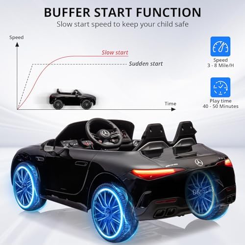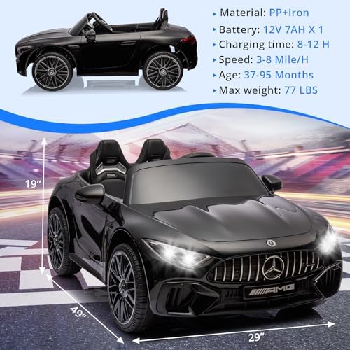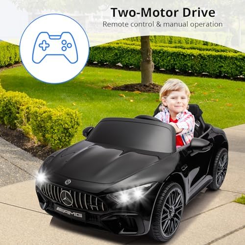 Hetoy Ride on Car for Kids 12V Licensed Mercedes Benz SL63 Electric Vehicles Battery Powered Sports Car with Remote Control, 2 Speeds, Sound System, LED Lights, MP3, Music, USB and Bluetooth, Black