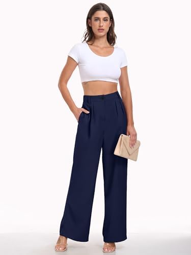 【Wide Leg & Flowy】 Work Pants made from 100% Polyester. They are light, breathable, elegantly draped, and exceptionally elastic for comfort and style, with a graceful Flow. 【Waist Design】These women's casual Wide-Leg Pants have a High-Waisted design. With unique front pleats and a soft elastic band at the back, they offer extreme comfort—a perfect blend of style and lounge vibes! 【Features】Single Button for a business touch; relaxed Wide-Leg cuffs for casual charm; two hidden deep side Pockets for added convenience. Effortlessly stylish. 【Occasion】Ideal for regular dress-up in the office or everyday casual wear for shopping and events. Pair the Palazzo Pants with shirt in Spring and Fall, tank top in Summer. 【Tips&Care】 Machine washable, Iron at low temperature if necessary, Please refer to our "Size Chart" for accurate fit before ordering. #24,382 in Clothing, Shoes & Jewelry ( ) #167 in