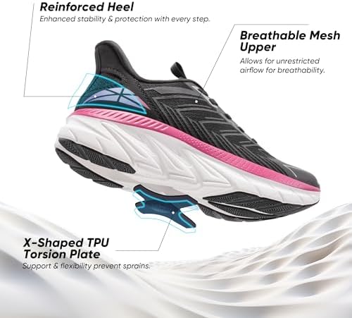 Supportive Midsole & Insole: The thick EVA foam midsole offers rebound and shock absorption, alleviating pressure and impact on the joints with the thickened soft insole. Easy On & Off: With the out-turned collar and elastic no-tie laces you can put on and remove these shoes with minimal effort. Enhanced Stability & Fit: The X-shaped TPU anti-torsion plate in the midsole ensures enhanced stability and prevents twisting that can lead to sprains, while the 3D textured design strengthens the upper for durability and a secure fit. Breathable & Skin-Friendly: The layered mesh fabric upper allows optimal air circulation, while the interior features elastic, skin-friendly Lycra fabric that minimizes friction, ensuring breathability and ventilation. Slip-Resistant Outsole: The specially crafted rubber outsole features a textured design for outstanding slip and abrasion resistance, making this pair ideal for extended walks. #2,923 in Clothing, Shoes & Jewelry ( ) #9 in